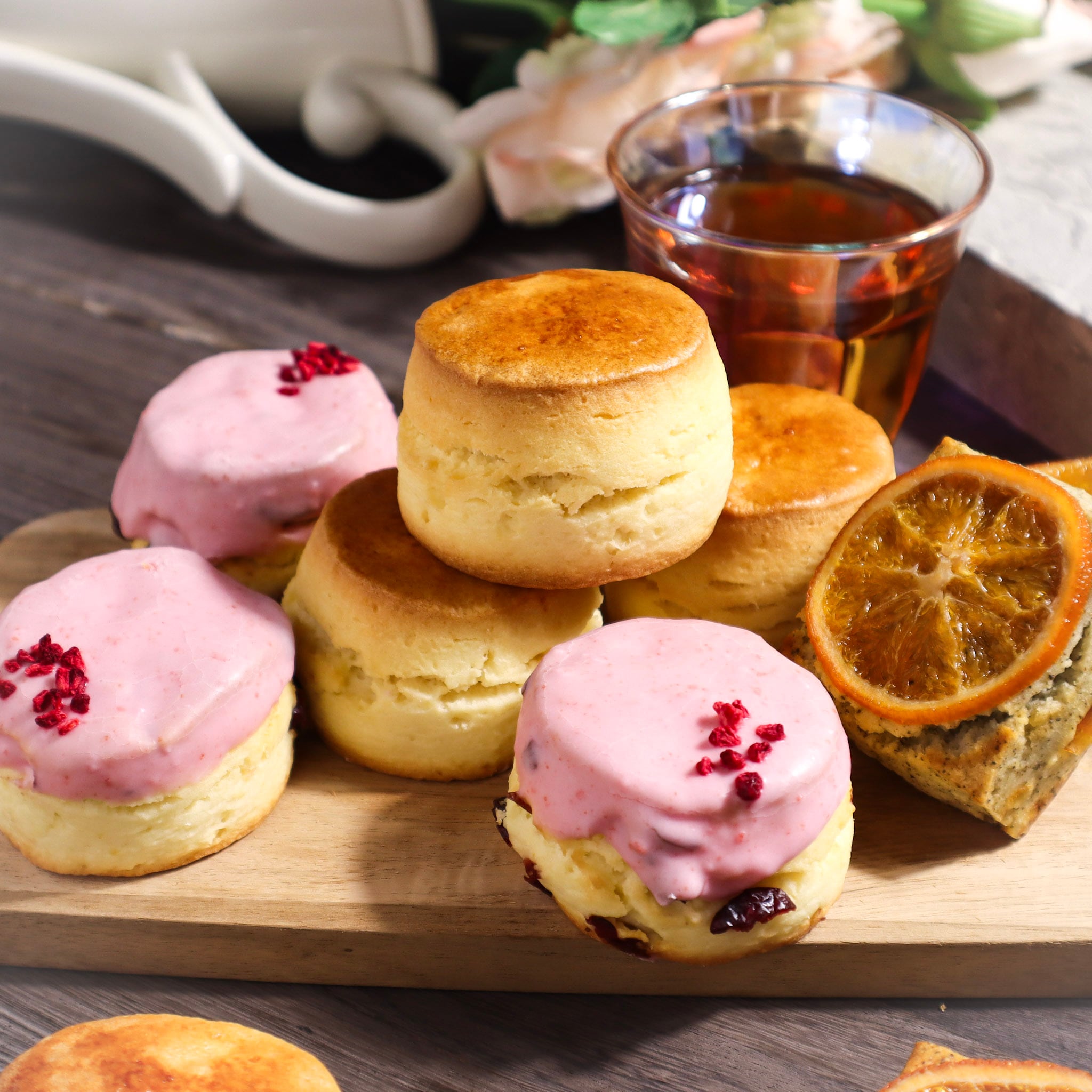 ジャスミンオレンジ・トリプルベリーというこの時期にしか食べられない季節限定スコーンを中心に、厳選紅茶2種まで入ったオールインワンセット。